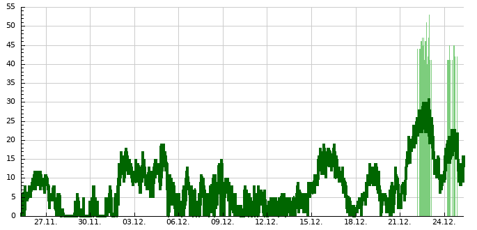 | Nejvyšší průměrná rychlost větru | 19.12.1986 | 22 km/h |