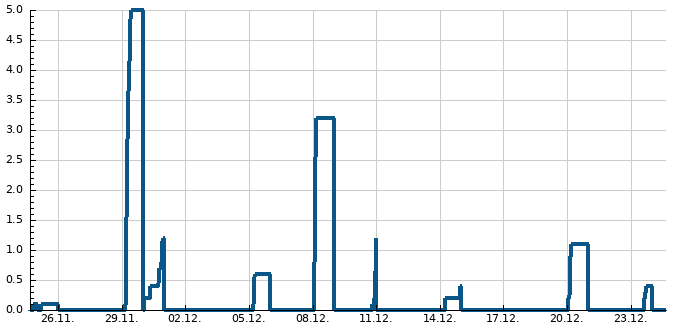 | Max. teplota | Min. teplota | Náraz větru | Srážky | Sněhová pokrývka |
