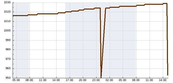 | Nejnižší tlak vzduchu | 02.12.1976 | 904 hPa |