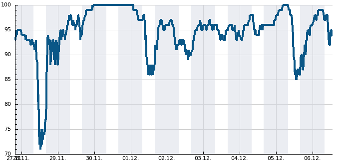 | Sluneční svit: Leden Únor Březen Duben Květen Červen Červenec Srpen Září Říjen Listopad Prosinec | 46.9 hod. 74.1 hod. 125.8 hod. 168.4 hod. 208 hod. 220.2 hod. 229 hod. 216.8 hod. 163.7 hod. 108.9 hod. 49.1 hod. 38.4 hod. | 79.7 hod. (2020) 146 hod. (2019) 220.2 hod. (2022) 297.4 hod. (2007) 304.1 hod. (1990) 336.7 hod. (2003) 334.3 hod. (1928) 334.1 hod. (2003) 253.8 hod. (1947) 196.9 hod. (1947) 84.4 hod. (1972) 75 hod. (2015) | 14 hod. (1969) 17.3 hod. (2013) 54.6 hod. (1944) 91.9 hod. (1972) 97.9 hod. (2010) 129.4 hod. (1956) 118.7 hod. (1980) 125.3 hod. (2006) 65.6 hod. (1996) 35.5 hod. (1939) 13.7 hod. (1958) 6.9 hod. (1969) |