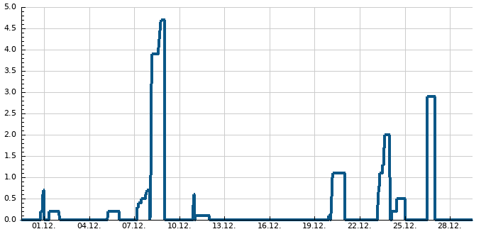 | Max. teplota | Min. teplota | Náraz větru | Srážky | Sněhová pokrývka |