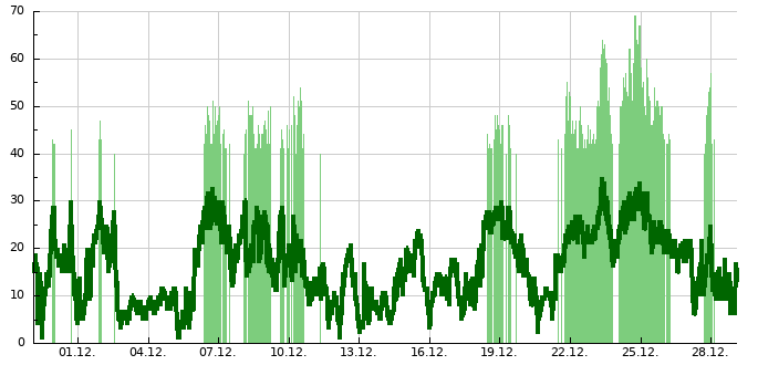 | Nejvyšší průměrná rychlost větru | 29.01.2000 | 20 km/h |