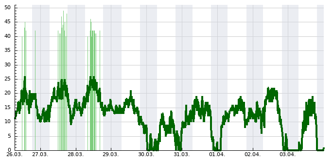 | Nejvyšší průměrná rychlost větru | 30.01.2022 | 8 km/h |