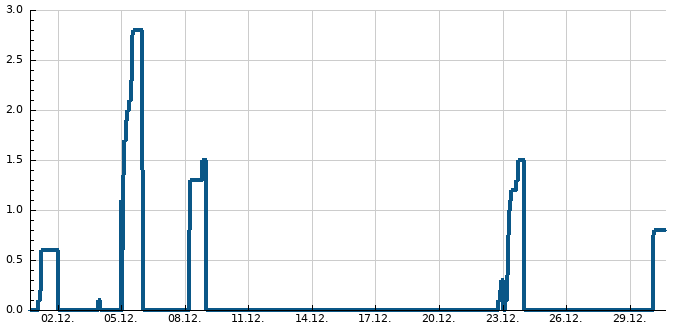 | Nejvyšší průměrná rychlost větru | 15.02.2012 | 14 km/h |