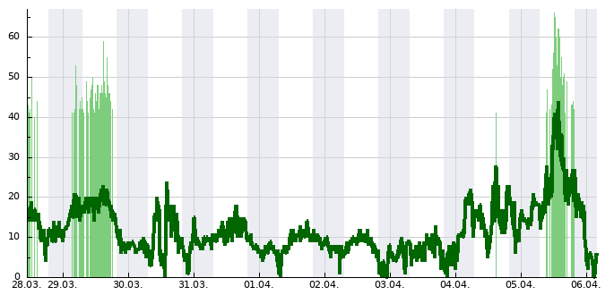 | Nejvyšší průměrná rychlost větru | 03.08.1925 | 20 km/h |