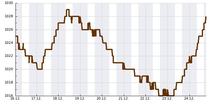 | 21:00 | -1.9 °C | SV, 11 km/h | 73 % | 1030 hPa | 1.6 mm |