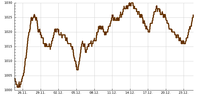 | Nejvyšší tlak vzduchu | 20.01.2020 | 1005 hPa |