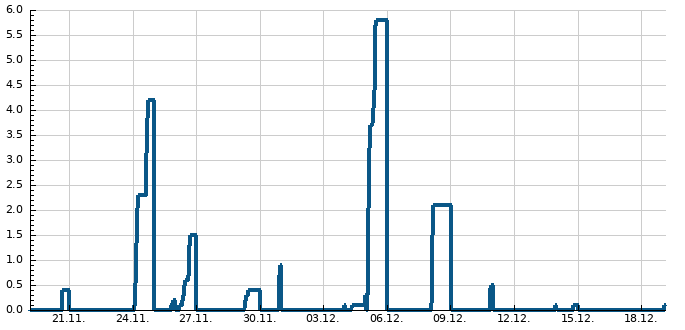 | 23:50 18.12.2025 | -0.1 °C | S, 3 km/h Náraz: 5 km/h | 98 % | 0 mm |