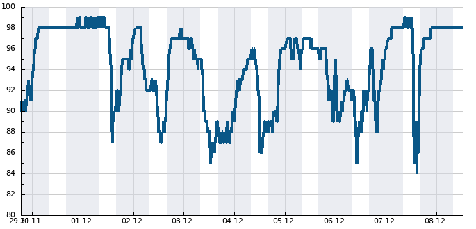 | Max. teplota | Min. teplota | Náraz větru | Srážky | Sněhová pokrývka |