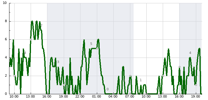 - Nejvyšší průměrná rychlost větru (23:40)