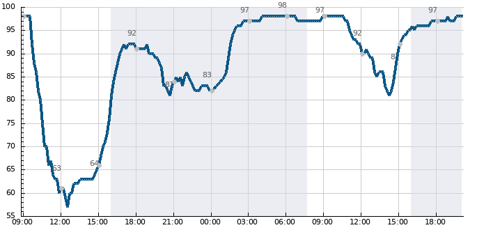 | 21:00 | 8.9 °C | JV, 0 km/h Náraz: 5 km/h | 84 % | 0 mm |