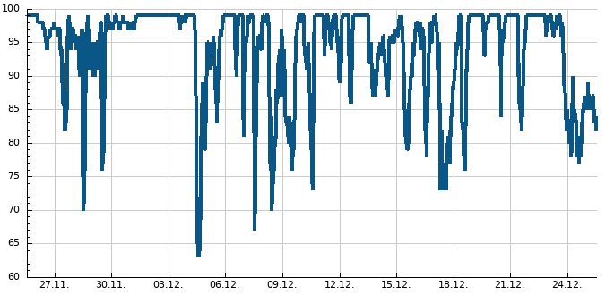 | Nejvyšší průměrná rychlost větru | 25.02.1989 | 15 km/h |