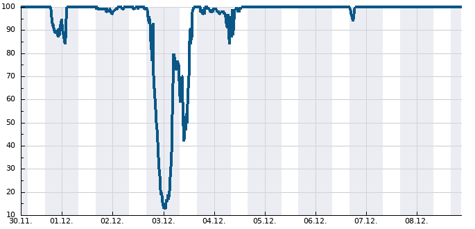 | Nejvyšší průměrná rychlost větru | 30.01.2022 | 18 km/h |