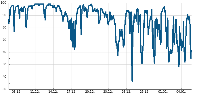 | Max. teplota | Min. teplota | Náraz větru | Srážky | Sněhová pokrývka |