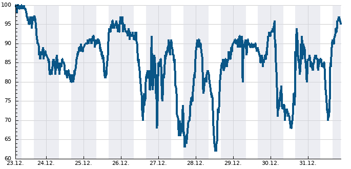 | 19:00 | -3.4 °C | SZ, 14 km/h | 95 % | 1012 hPa | 2 mm |