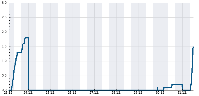 | Max. teplota | Min. teplota | Náraz větru | Srážky | Sněhová pokrývka |