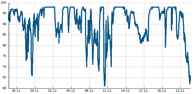 | Max. teplota | Min. teplota | Náraz větru | Srážky | Sněhová pokrývka |