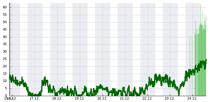 | Nejvyšší průměrná rychlost větru | 30.11.2008 | 11 km/h |