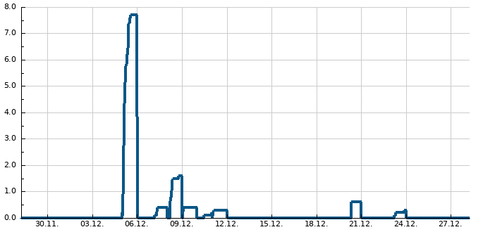 | Max. teplota | Min. teplota | Náraz větru | Srážky | Sněhová pokrývka |
