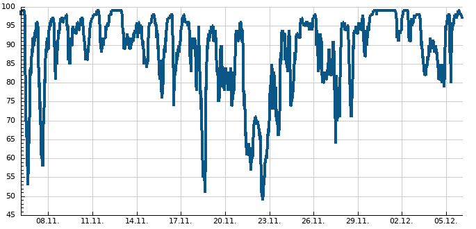 Nejvyšší průměrná rychlost větru (12:30)