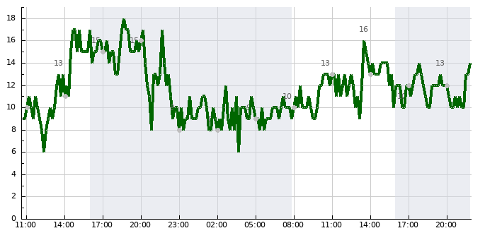 - Nejvyšší teplota (19:30)