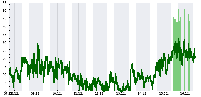 | Max. teplota | Min. teplota | Náraz větru | Srážky | Sněhová pokrývka |