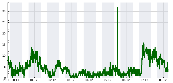 | Max. teplota | Min. teplota | Náraz větru | Srážky | Sněhová pokrývka |