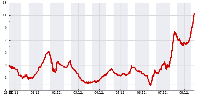 | Max. teplota | Min. teplota | Náraz větru | Srážky | Sněhová pokrývka |