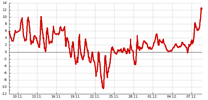 | Nejvyšší průměrná rychlost větru | 18.01.2007 | 14 km/h |