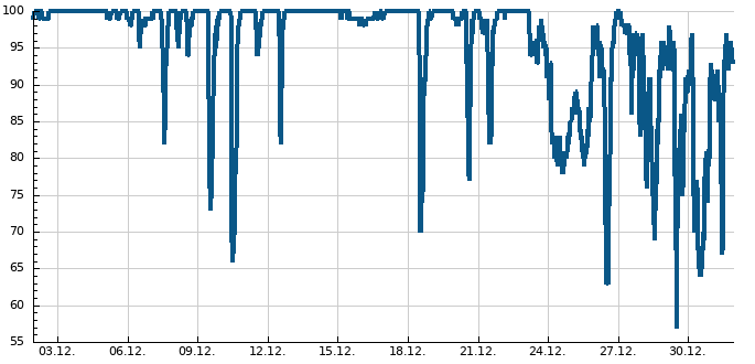| Nejvyšší průměrná rychlost větru | 06.11.1962 | 19 km/h |