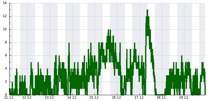 | Max. teplota | Min. teplota | Náraz větru | Srážky | Sněhová pokrývka |