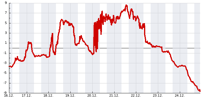 | 14:00 | -6.7 °C | SV, 25 km/h Náraz: 50 km/h | 95 % | 0 mm |