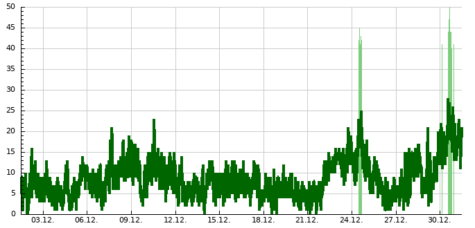 | Nejvyšší průměrná rychlost větru | 18.01.2007 | 18 km/h |