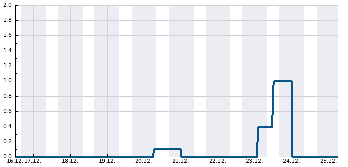 | 22:00 | -4.7 °C | SV, 18 km/h | 81 % | 1033 hPa | 0 mm |