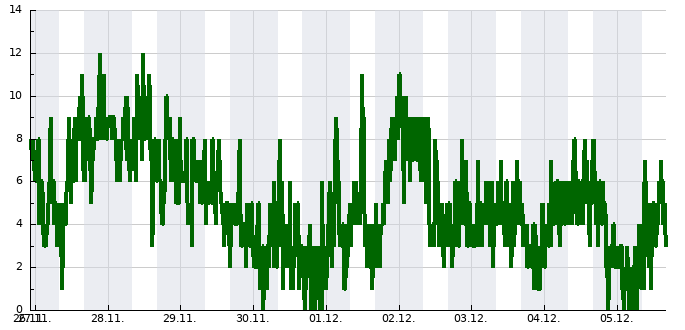 | Max. teplota | Min. teplota | Náraz větru | Srážky | Sněhová pokrývka |