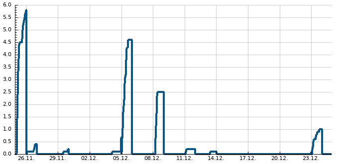 | Max. teplota | Min. teplota | Náraz větru | Srážky | Sněhová pokrývka |