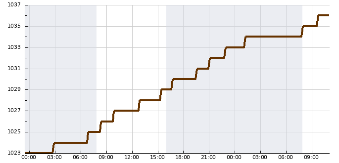 | 17:00 | -0.5 °C | SV, 22 km/h | 69 % | 1030 hPa | 0 mm |