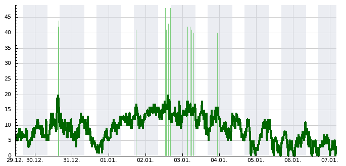| Max. teplota | Min. teplota | Náraz větru | Srážky | Sněhová pokrývka |