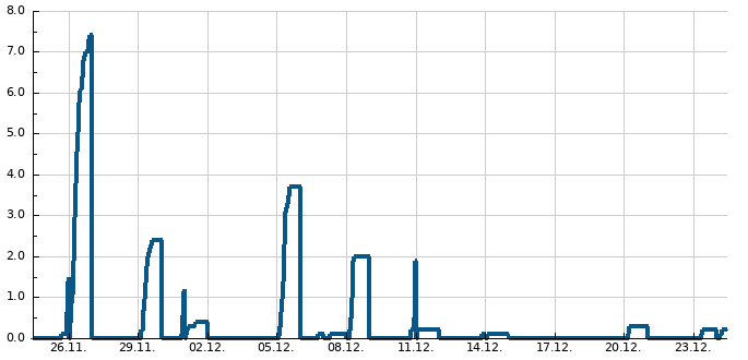 Graf zobrazuje denní srážkové úhrny v průběhu měsíce.