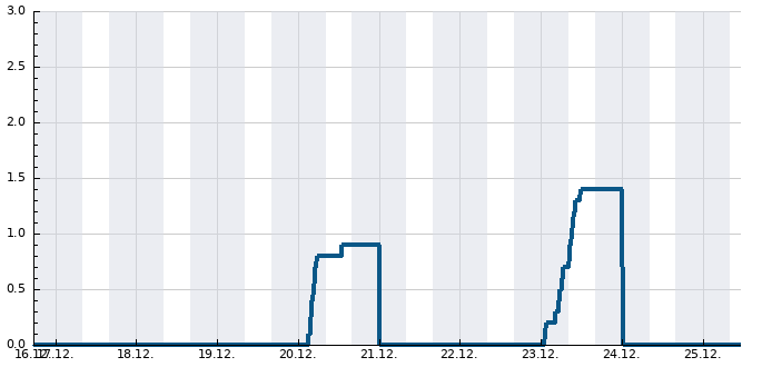 | 16:50 | -7.2 °C | SV, 7 km/h Náraz: 19 km/h | 85 % | 0 mm |