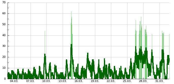 | Nejvyšší průměrná rychlost větru | 11.03.1972 | 33 km/h |