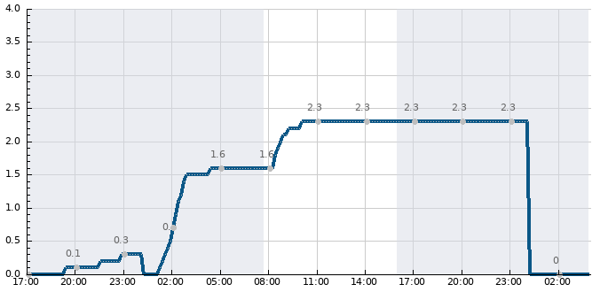 | 19:00 | 1.8 °C | Z, 4 km/h | 91 % | 1016 hPa | 2.4 mm | 100% |