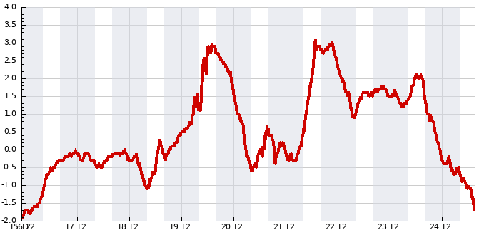 | 23:00 | -3.8 °C | SV, 19 km/h Náraz: 34 km/h | 82 % | 0 mm |