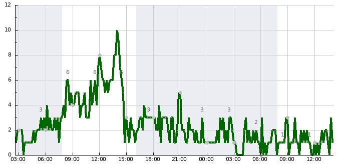 - Nejvyšší průměrná rychlost větru (14:00)