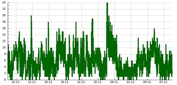 | Nejvyšší průměrná rychlost větru | 18.03.2009 | 12 km/h |