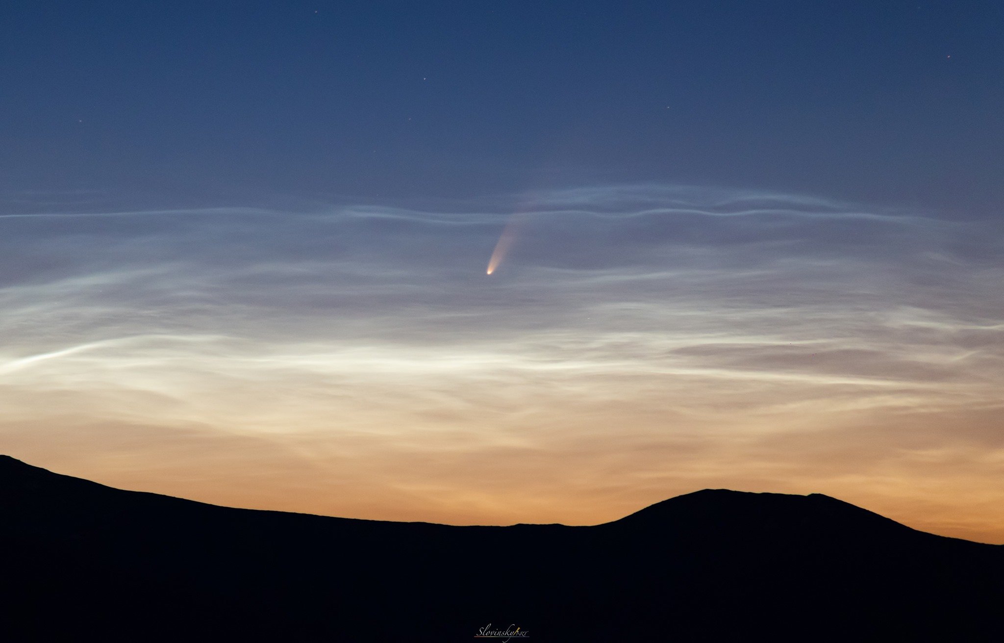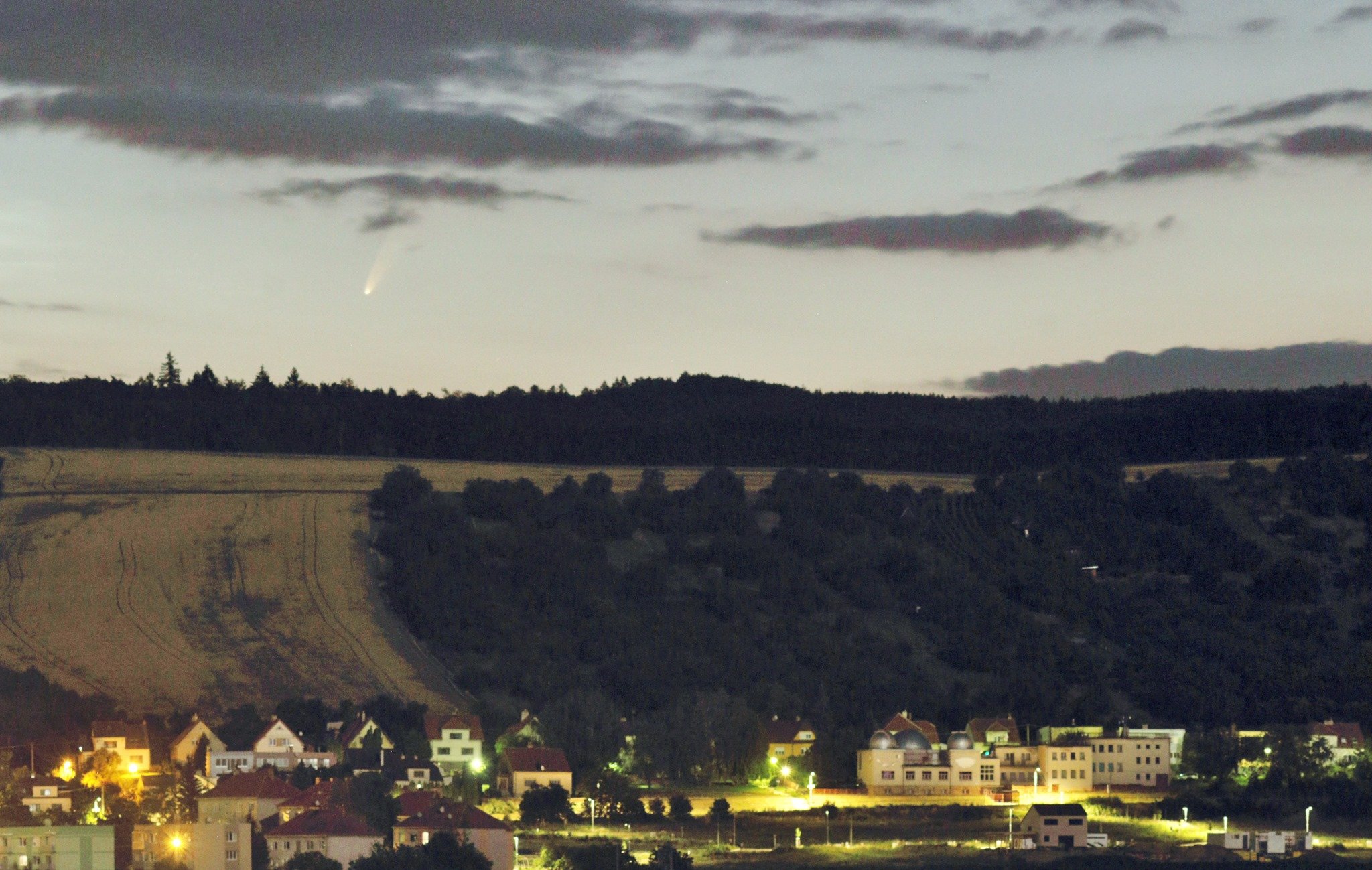 Pondělní záběr komety NEOWISE ze silnice mezi Archlebovem a Ždánicemi na Jižní Moravě