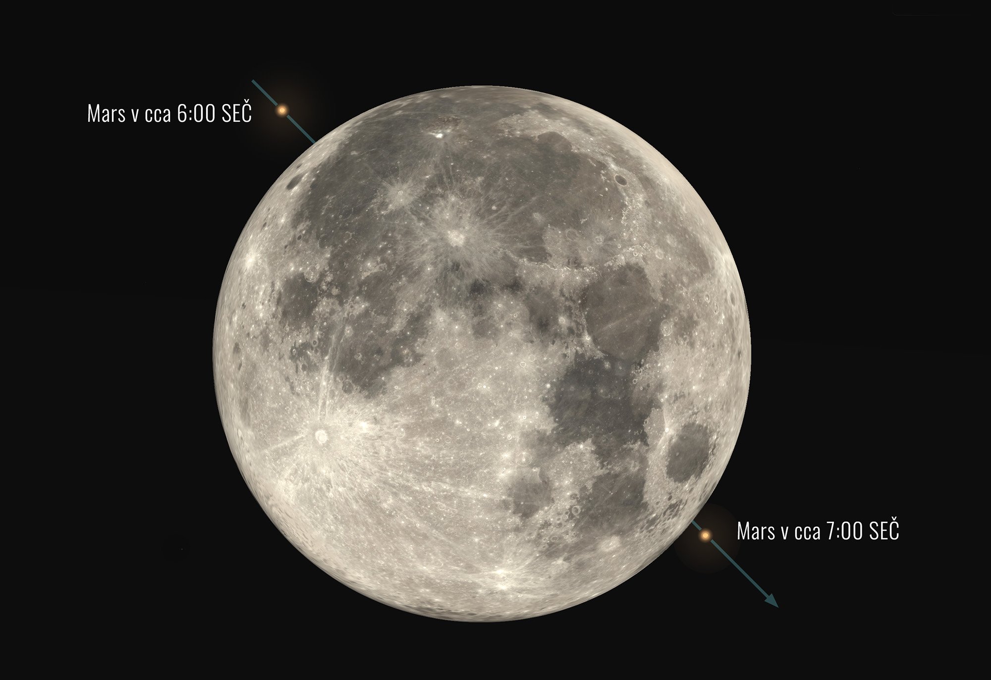 Ve čtvrtek nastane vzácný úkaz, Mars se schová za úplňkový Měsíc