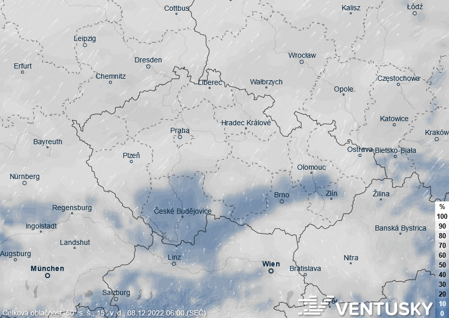 Očekávané množství oblačnosti ve čtvrtek v 6:00