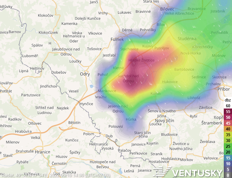 V Jeseníku nad Odrou bouřka lámala stromy a poničila střechy, mohlo jít o slabé tornádo