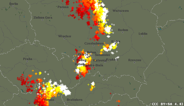 Blesky dne 1.7.2022 mezi 18:00 až 20:30 - přes jih Moravy přecházela velmi silná bouřka